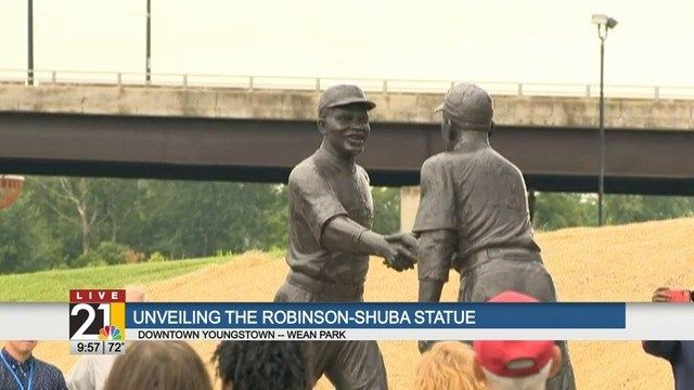 Robinson Shuba Handshake Statue Unveiled In Downtown Youngstown Wfmj Com